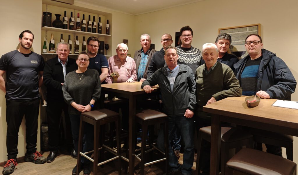 Die Erinnerungsfotos zeigen (li.) den neuen Ortsvorstand (soweit zum Zeitpunkt des Fotoshootings anwesend) und (re.) zusammen mit seinen Gästen im Weingut Steffen Bähr.